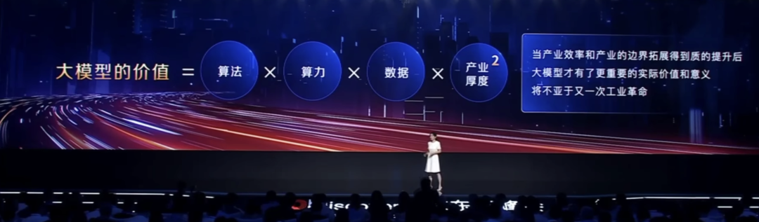 刚刚结束京东云峰会上,京东明确将大模型的产业价值放在首位。京东集团CEO许冉表示,大模型真正实现自己的价值,一定是在产业应用中,并提出一个公式:大模型的价值=算法×算力×数据×产业厚度的平方。实现产业价值,才是大模型竞争这场长跑的终点线。