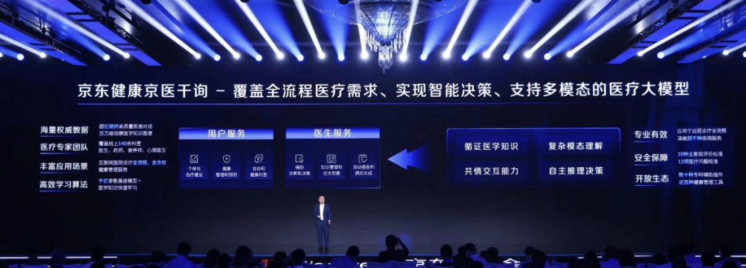 在健康场景中,京东已基于千亿级的言犀大模型训练出相应的医疗大模型:京医千询。该模型将在远程医疗诊断、提供诊断和治疗决策、医疗案例咨询搜索等环节,帮助医疗从业者在远程医疗环境中更准确地进行诊断、治疗和提供咨询服务。