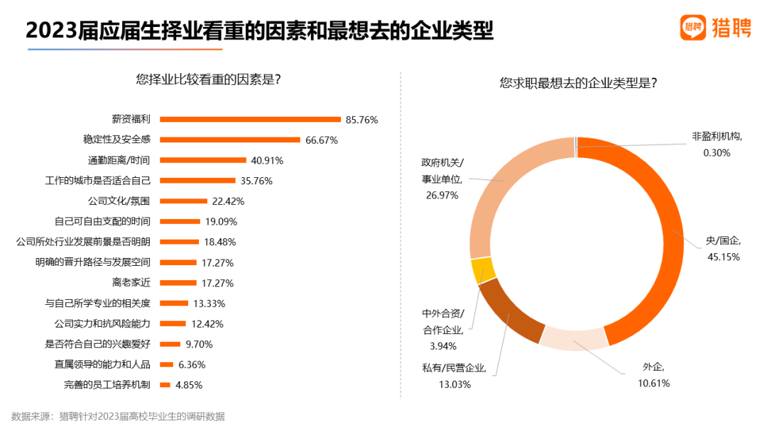 1)应届生择业最重薪资福利、安稳,国/央企为首选