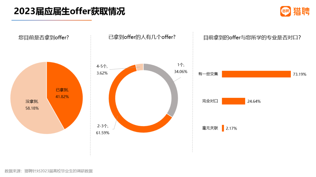 1)超4成应届生已获offer,近25%的人offer与专业完全对口