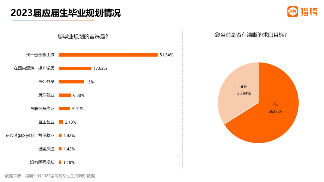 1)超5成应届生毕业首选全职工作,求职者中超3成无清晰目标