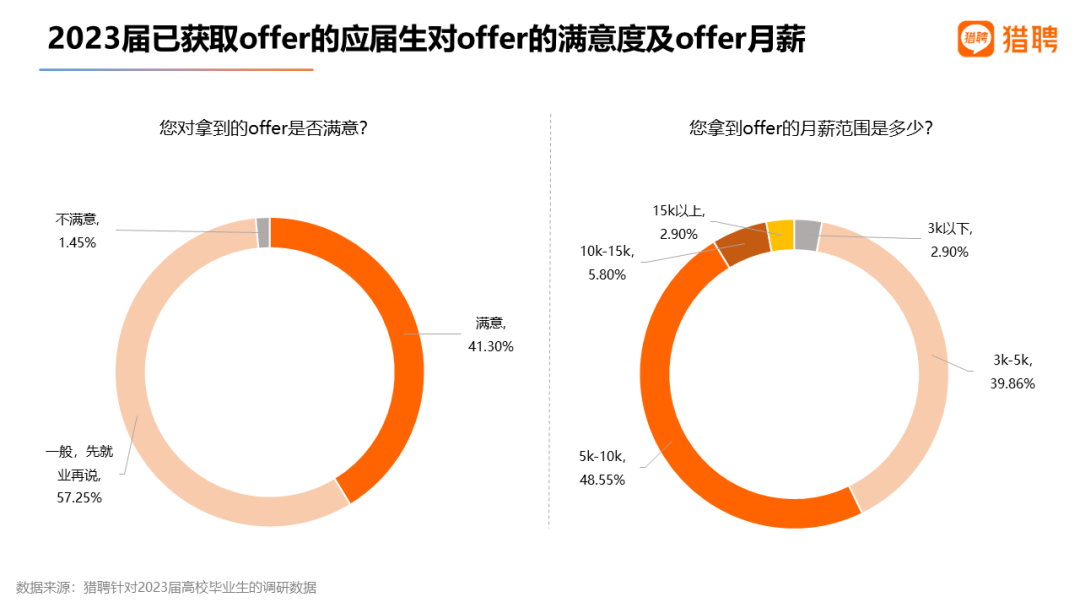 2)超4成应届生对offer满意,近5成offer月薪5千-1万