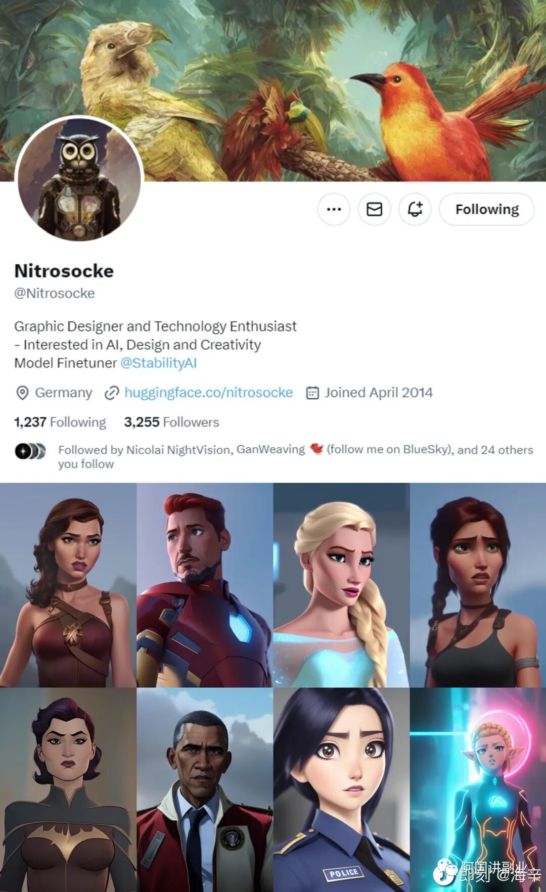 ✨ 推荐理由:Nitro 训练过很多非常棒的模型,他的 GitHub 页面有详细讲风格模型怎么训练的教程。他自己本身是设计师出身,在去年年底微调了几个很厉害的风格模型后,现在被 StabilityAI 挖走了。
