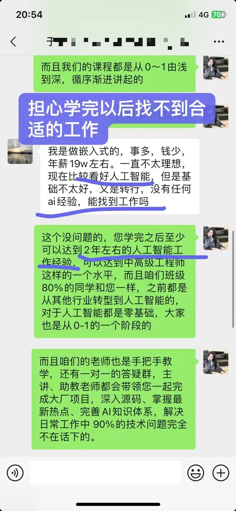 1、丁同学普通本科,学习前曾担心自己的年龄和自己的学历是否能够找得到工作,但是学完之后顺利转型到AI领域,年薪从之前的25万拿到53万!