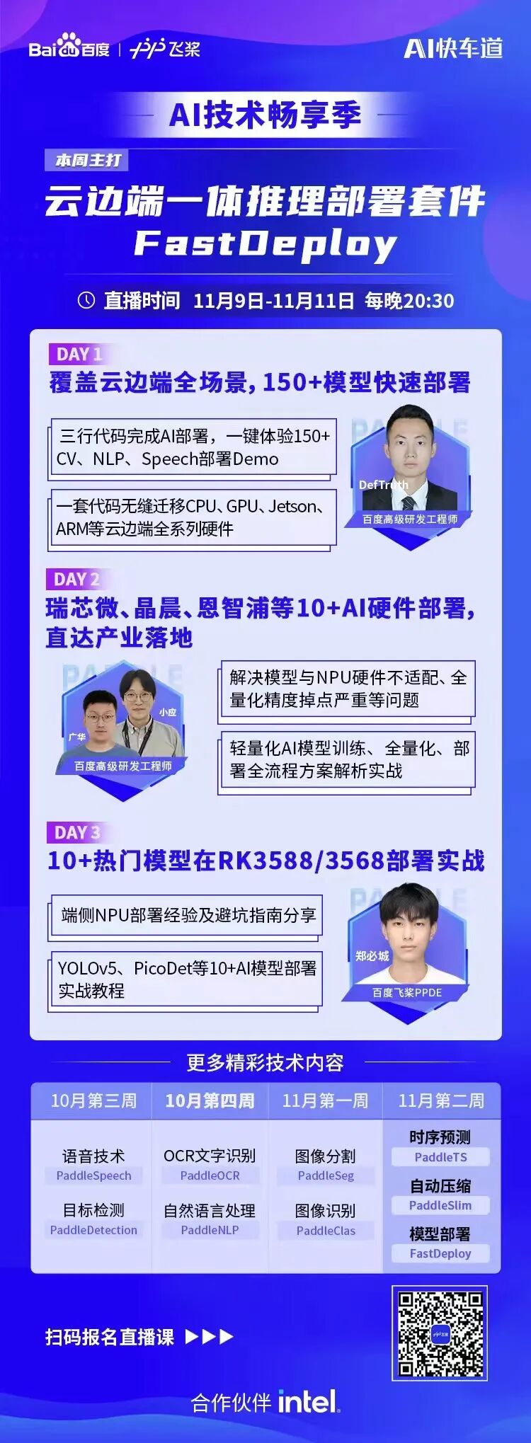 为了让开发者进一步了解FastDeploy的部署能力,更快速的使用到项目当中,我们准备了直播技术交流活动,快快扫码加群关注我们的直播间吧!