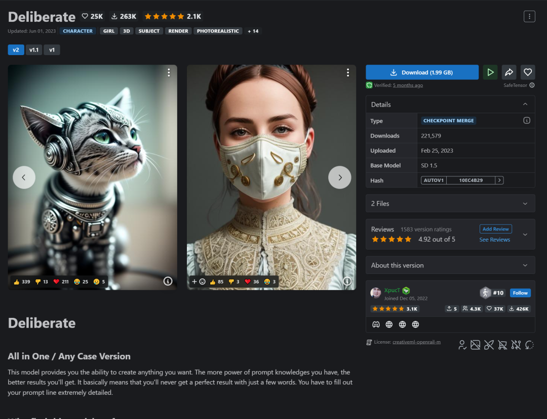 真实系模型:Deliberate、Realistic Vision、LOFI