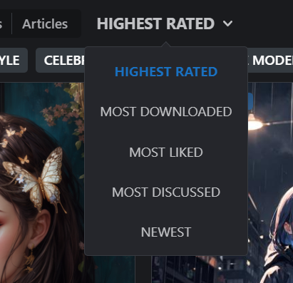 改版后的C站新加了一个Images的选项,里面是一些站内好评比较多的AI图,也可以在这里找到别人作品的提示词、采样方法或者随机种子。