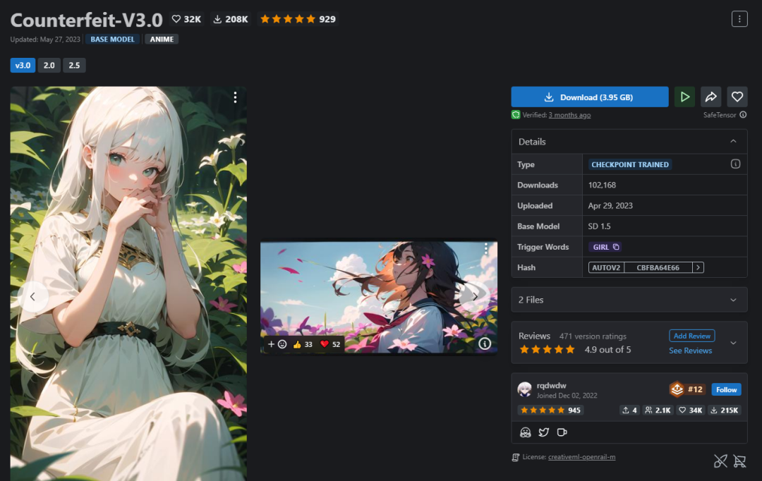 对于别人训练生成的模型,我们称为私炉模型。跟炼丹及咒语概念差不多。因为官方的模型训练上存在版权问题,而私炉是大部分人的选择,虽然它的版权还存在一些争议空间。