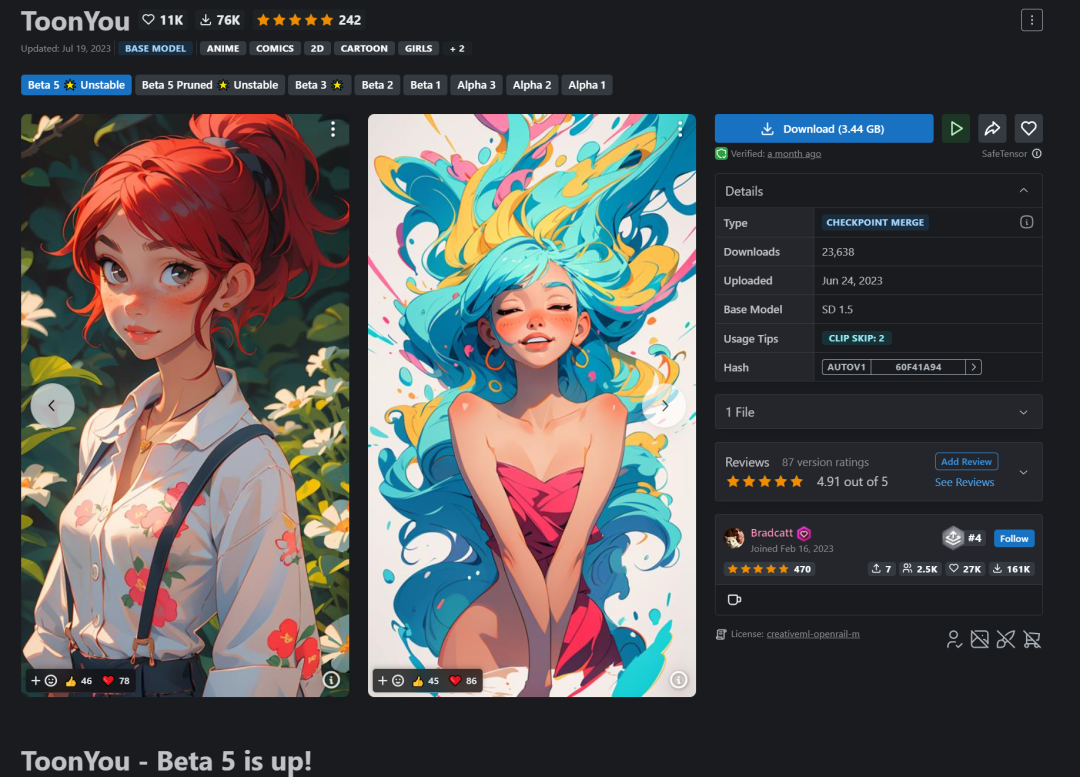 目前AI绘画圈子里主流的模型下载网站有两个: