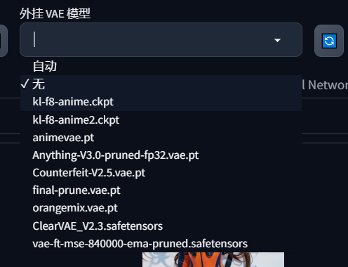 当然也有一些好用的通用VAE,例如秋叶大佬整合包里自带的(kl-f8-anime2.ckpt),VAE的安置地址同样在models文件夹下的VAE里面,你可以把一些针对特定模型的VAE改成和他们的Checkpoint一样的名字。然后再在VAE模型中勾选自动。