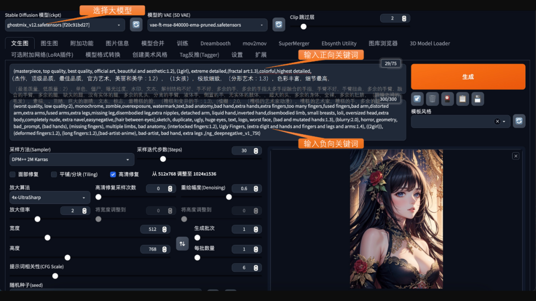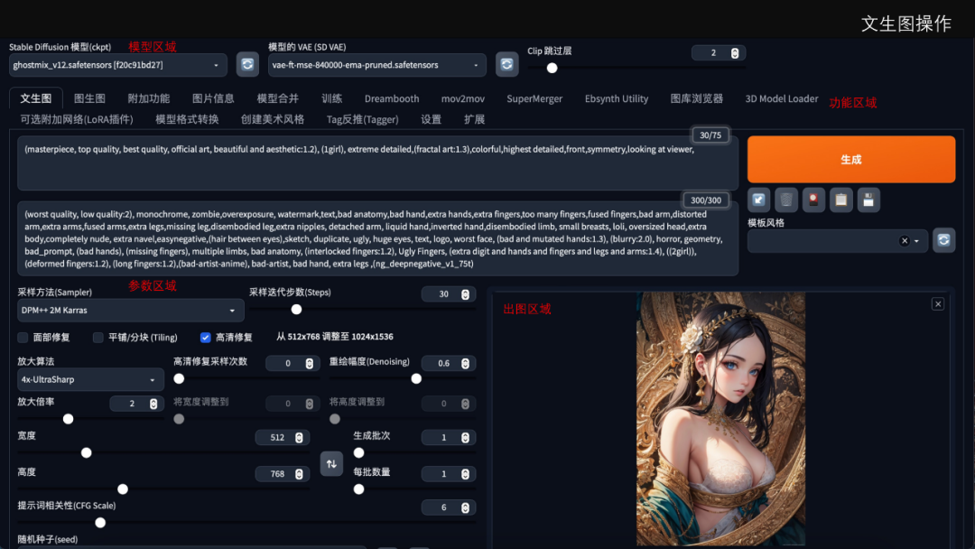 其实这些操作的界面目前都有中文UI了,所以要了解基本操作并不难,但是怎么输入关键词才是我们生成图片的关键。