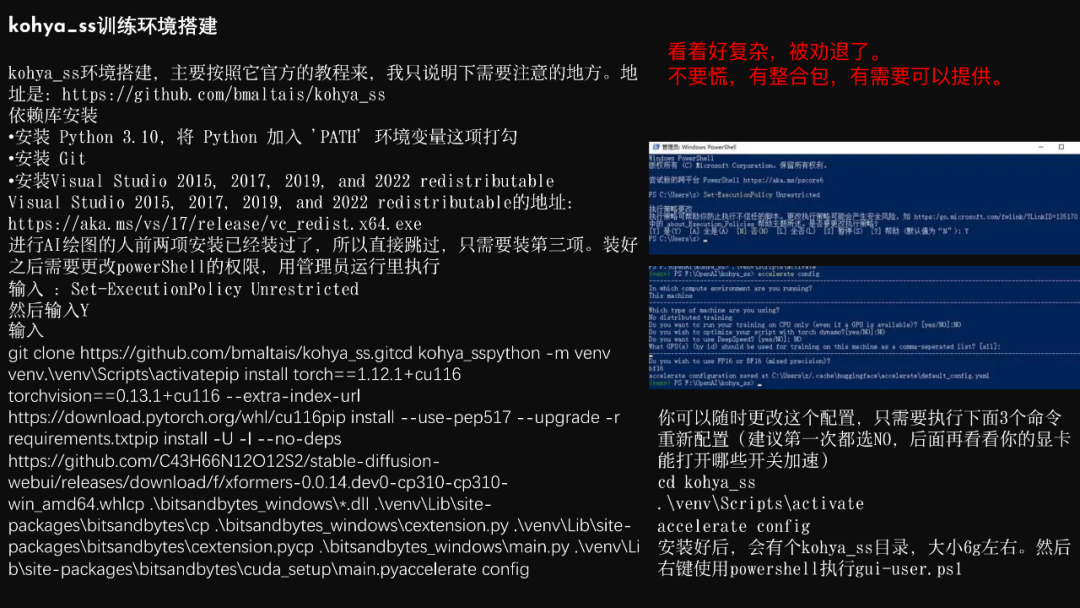 kohya_ss训练环境搭建看着真的还是有点复杂,是不是有点被劝退了。不要慌,有整合包,有需要可以提供哈。