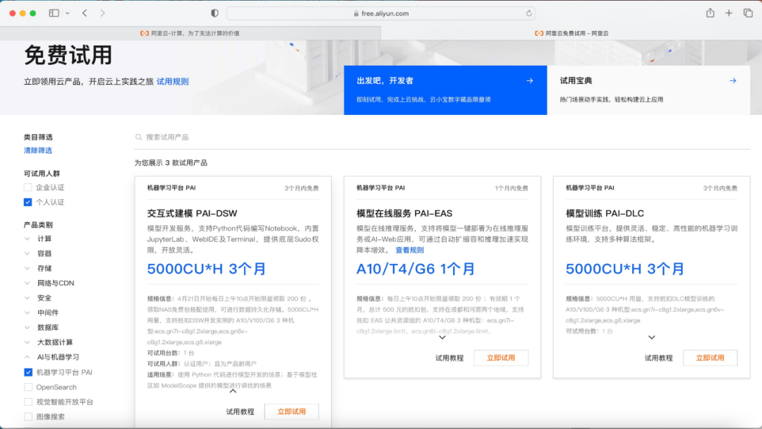 https://free.aliyun.com/?product=9602825&crowd=personal&spm=5176.28055625.J_5831864660.8.e939154aIGRniv&scm=20140722.M_113024497.P_154.MO_1802-ID_9553144-MID_9553144-CID_20080-ST_7663-V_1