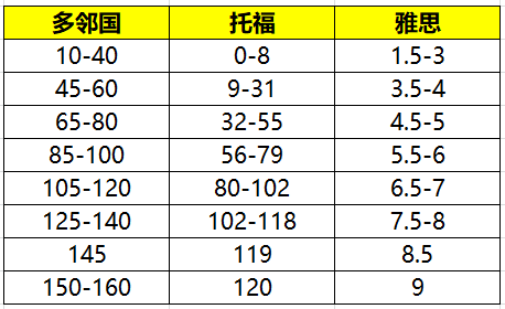 小新下面会给出大家多领国和雅思还有托福分数的换算情况,供大家参考: