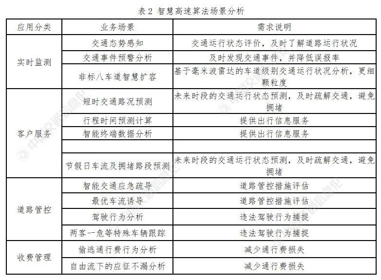 以浙江沪杭甬高速公路智慧化提升项目为例,需要构建实时监测、客户服务、道路监控、收费管理等四大应用13个算法[3]。