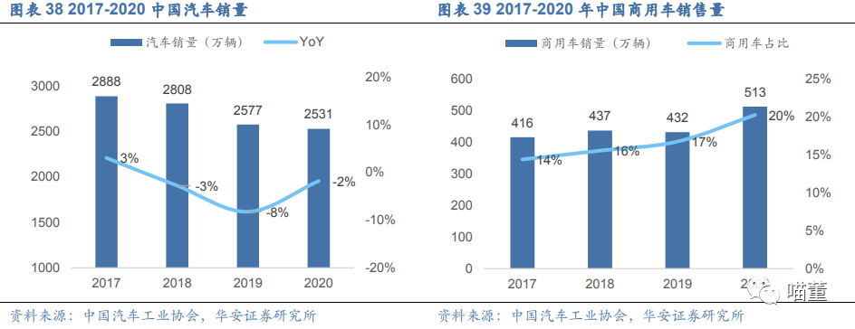 根据中国汽车工业协会发 布的数据显示,2019年,我国汽车产销量分别为2572万辆和 2577万辆,产销量持续蝉联全球第一;与此同时,作为当下DMS的主要应用领域,我国商用车销量逐年上升, 2020年达513万,同比增长20%,且在汽车总销量中的占比不断扩大。据公安部交通管理局统计,截至2019年底全国汽车保有量为2.6亿辆。我们认为,年均2000万量以上的新车增量,以及商用车的高速增长,是国内汽车智能化的重要基础。