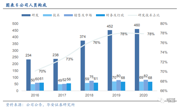 持续进行股权激励计划, 深度绑定核心骨干保障公司长期发展 。2020年,公司为进一步建立激励约束机制,与员工分享公司发展红利,推出为期五年的业绩考核股权激励计划。2020年9月公司共向312个技术、业务及其他骨干授予353.6万股股票,占授予时公司总股本的0.87%,覆盖员工约占公司总数的40%。2021年,公司又计划回购2亿元至 3亿元股份在未来全部用于员工持股计划或股权激励,并在发布股份回购实施结果的三年内实施。我们认为,公司在实施股权激励方面有着长期稳定的计划,对深度绑定核心员工起到积极作用,助力公司成功把握多轮技术及产品周期。