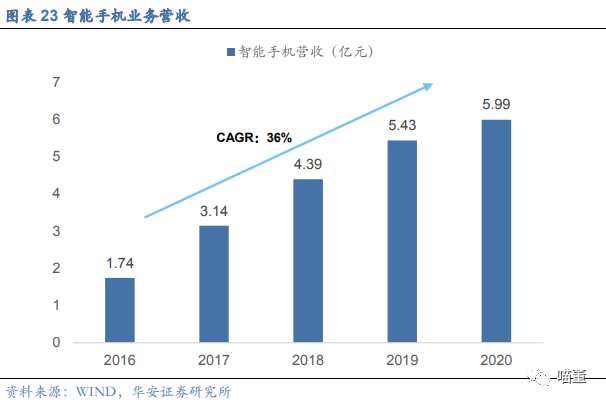 智能手机仍是第一大业务,智能汽车业务增速超300%。2017年至2020年智能手机业务营业收入占比连续超8成;2017年开始拓展智能汽车业务,尤其是2020年公司智能汽车业务迎来爆发式增长,营收增速达到300%以上,营收占比接近10%。2016年公司营业收入中其他收入较高,主要系数码相机业务收入较高,随着数码相机的多数功能被智能手机替代,2017至2019年其他业务占比不断下降,而2020年其他业务占比提升,主要系公司IoT业务增长所致。