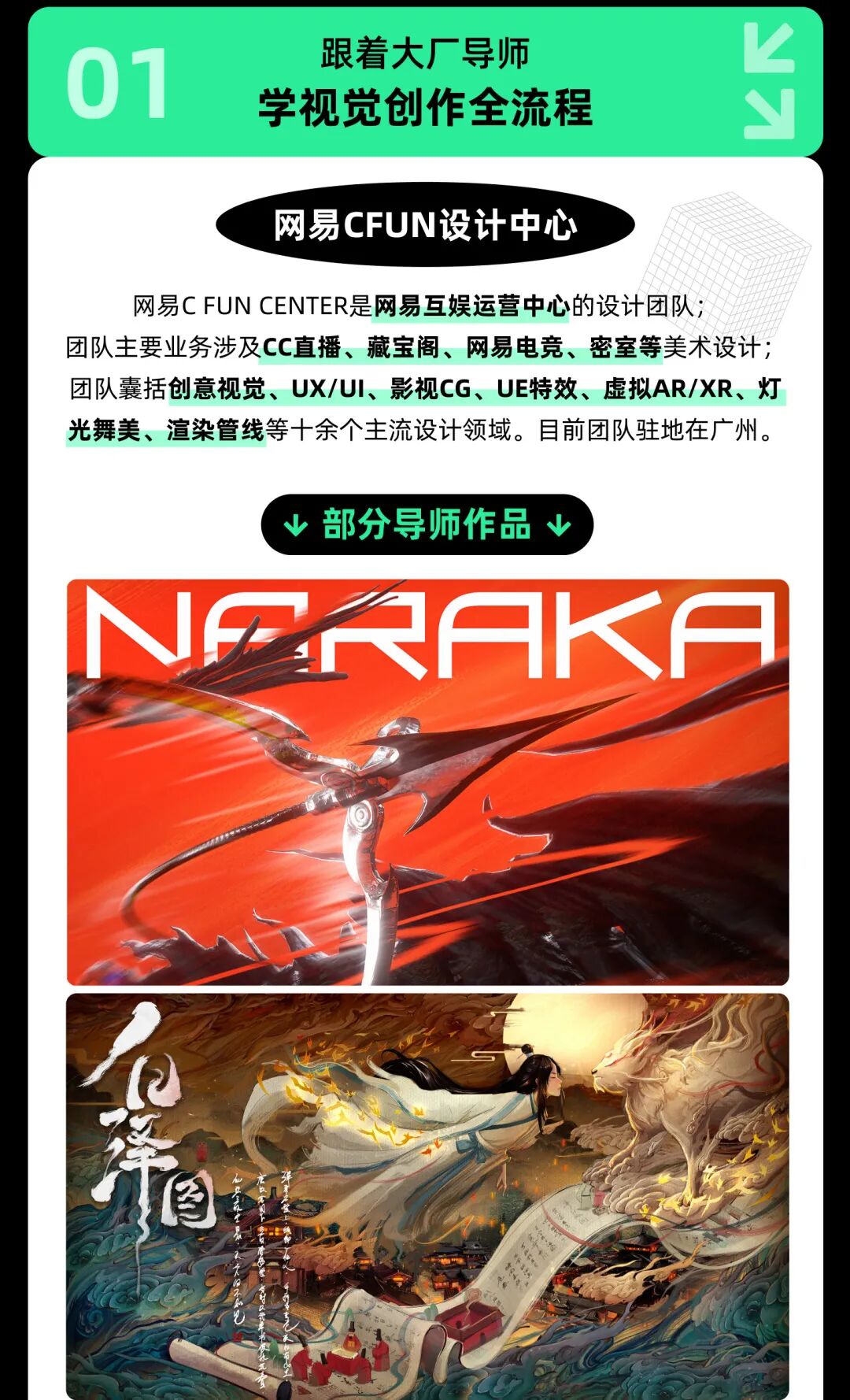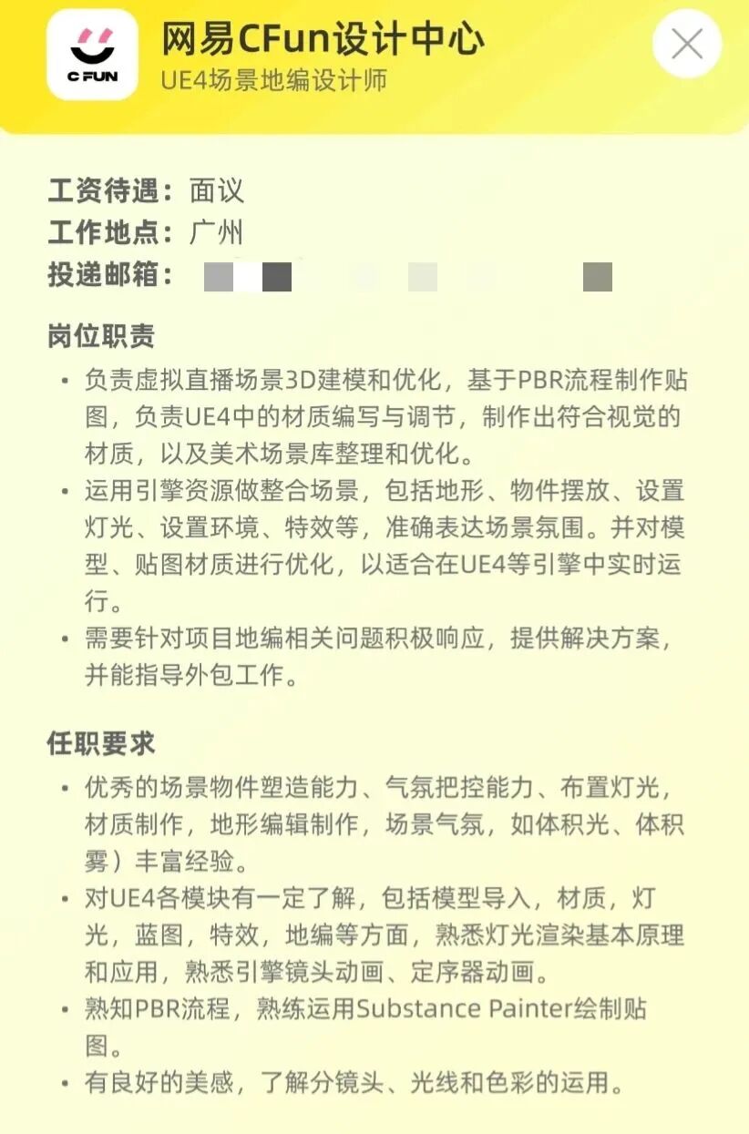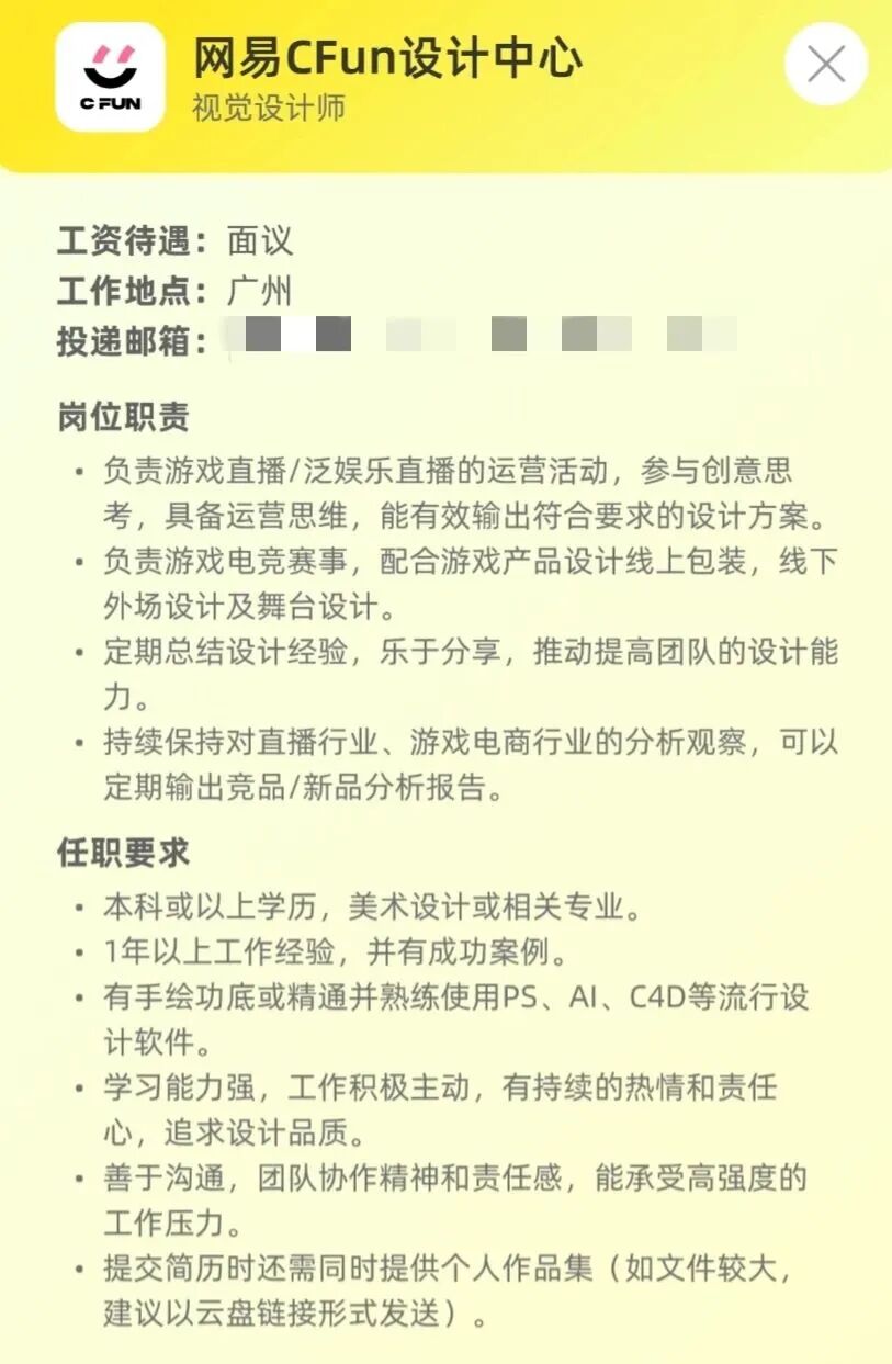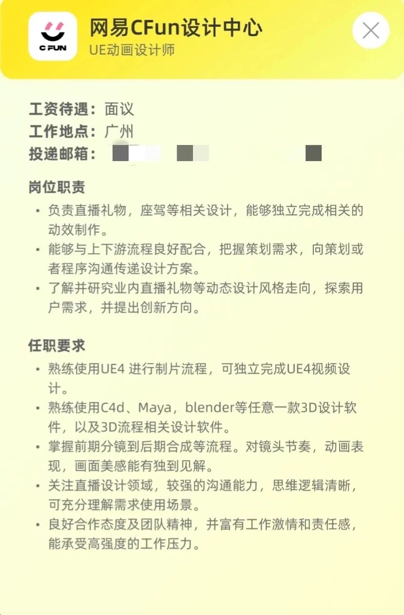 网易CFUN设计中心是网易互娱运营中心等设计团队,团队业务涉及CC直播、藏宝阁、网易电竞、密室等美术设计;团队囊括创意视觉、UX/UI、影视CG、UE特效、虚拟AR/XR、灯光舞美、渲染管线等十余个主流设计领域。