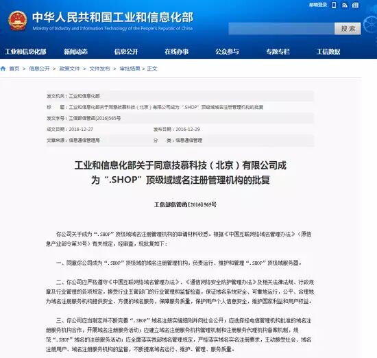 获得工信部备案牌照说明.shop域名在中国合法合规了。众所周知,在中国开办网站,需要对网站进行备案登记,而备案登记的首要条件是该网站域名后缀必须合法合规。