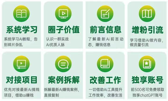一个专注研究Ai赚钱落地实战社群,社群提供注册、方法、实操、工具、案例及对接项目,让你在短时间快速掌握 Al,比如 ChatGPT、Notion AI、AI 绘图等。