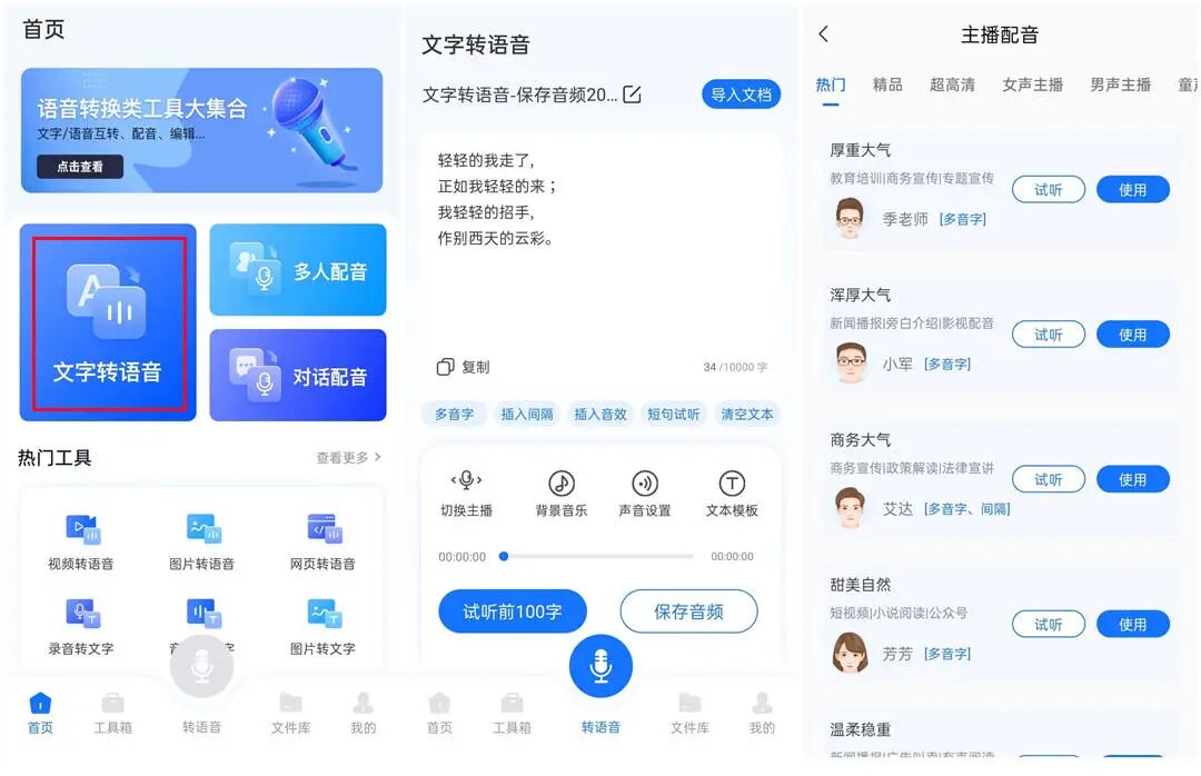 里面的发音人一共有200多种,你可以找到优雅知性、温柔大气的女声,