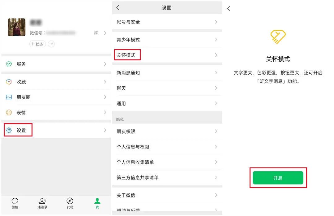 当然,微信的文字转语音功能是比较简单的,而且需要启动关怀模式才能使用。