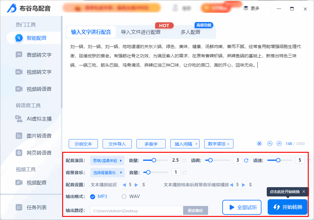 我们只需要输入需要转换的文字,就可以一键生成语音文件了,小白也是可以轻松制作的。