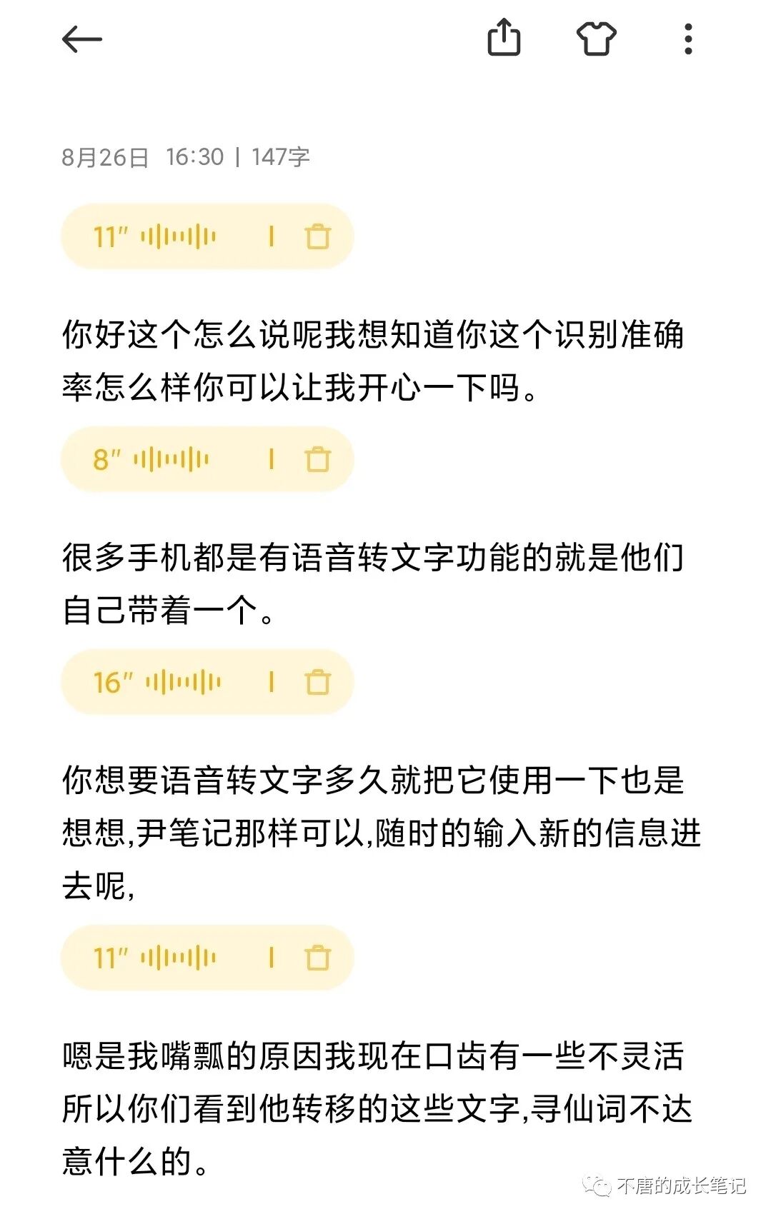 很多手机自带的便签也有语音转文字功能。