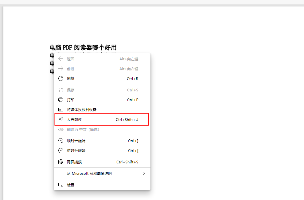我们只需要将文本内容复制到PDF格式的文档中,借助这款浏览器打开,鼠标右键单击,找到【大声朗读】,就可以帮我们实现文字转语音了,适合配音要求不太高的小伙伴。