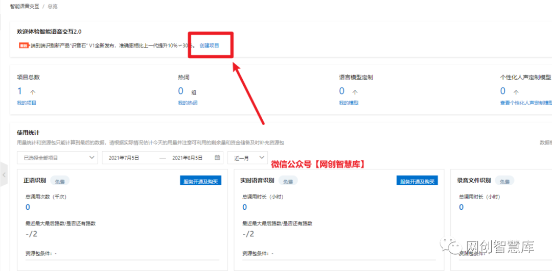 此时,页面上方可以看到创建项目的选项,点击进去。