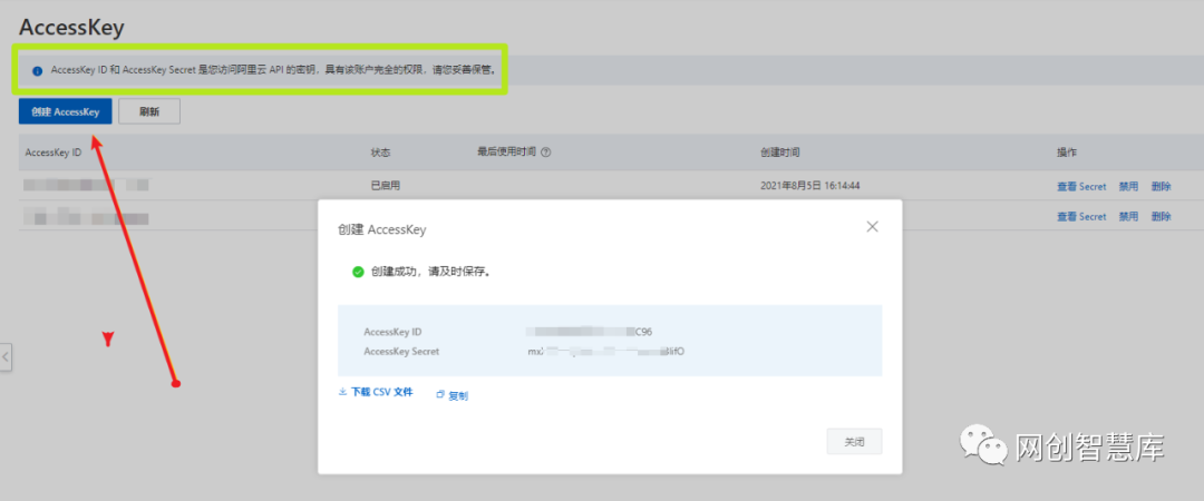 就可以看到AccessKey ID和AccessKey Secret了。