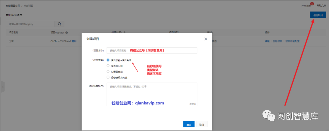 名称随便填、类型默认即可,描述不用写,点击确认。