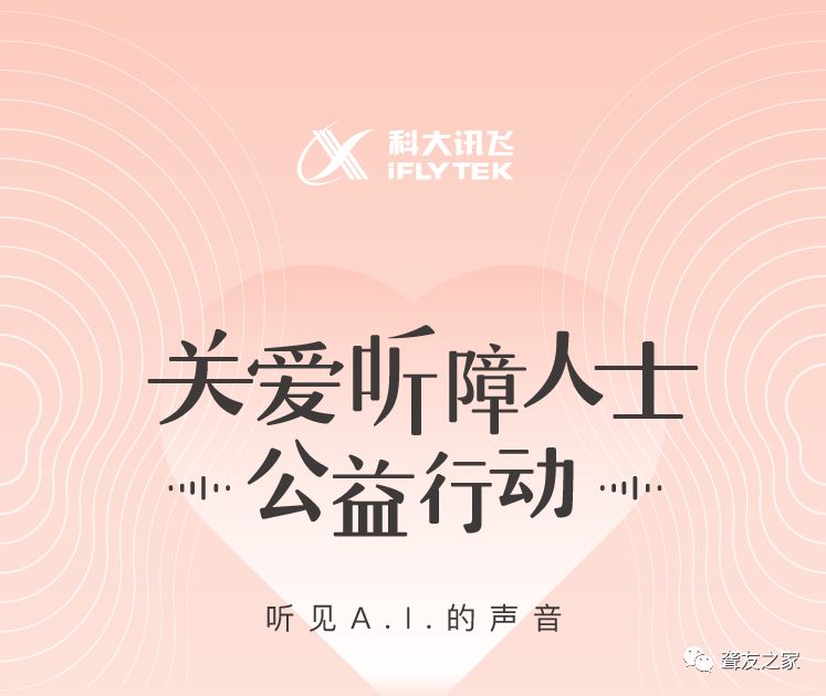 听见A.I.的声音公益行动是科大讯飞在2019年发起的公益爱心项目,具体内容如下:1.讯飞听见App为听力障碍人士免费提供实时语音转文字服务,希望帮助大家用文字去感受世界,进行日常沟通。所有听力障碍人士,只需上传残疾证即可免费申领服务。2.所有听见用户在听见网站/App每成交1笔机器快转订单、或者购买一台讯飞听见M系列硬件,都可为听力障碍人士捐赠相应的语音转写时长。传递温暖用A.I.发声,让我们共同为听障公益事业贡献一份力量。