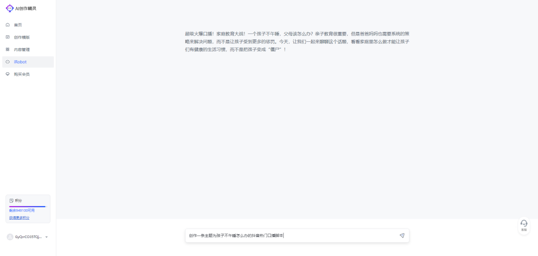 另外AI创作精灵也推出了国内版本的chatgpt——iRobot,用户可以自由向其提问获取想要的文本内容和咨询服务。