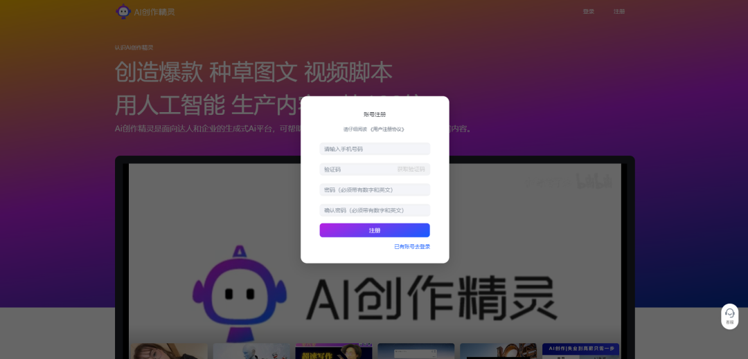 打开AI创作精灵的官方网站aij0.com,进行注册和登录。