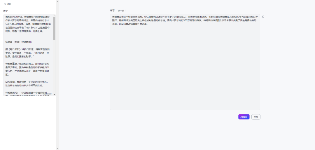 可直接选择对应模板,将要改写的原文贴入其中,点击撰写操作即可,非常快速。