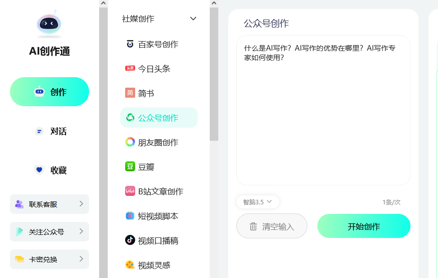 AI创作通-一款AI写作工具,助你成为高效写作达人,轻松搞定各种创作文案、各类写作场景!