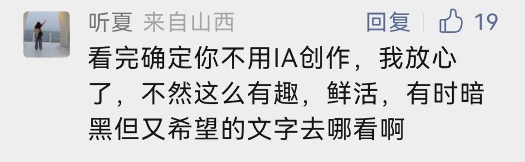 本来我对AI创作是没有什么兴趣的,我不相信AI能写出感情来。前几天写小号的时候说别的事情,无意中提了一嘴,然后这位同学留言: