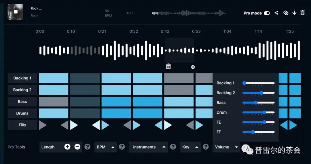 Soundraw还提供了专业模式(Pro Mode)。用户可以对乐器、音调、节拍、伴奏等等做更深入和细致的调整。