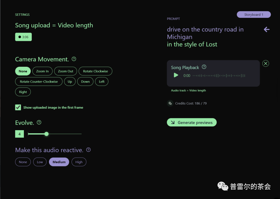 Evolve决定了视频内容的稳定性和可控性,范围1-10,数值越高,生成内容越有创意。Audio Reactive则决定了视频内容与音乐互动的强弱。