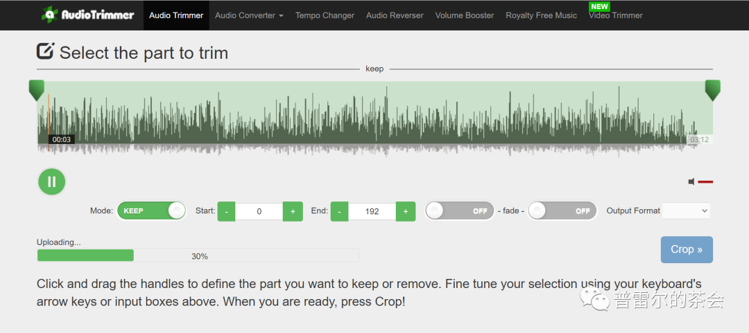 另外,在上传音频的区域,我们还可以看到一个链接:Need to trim your audio file?