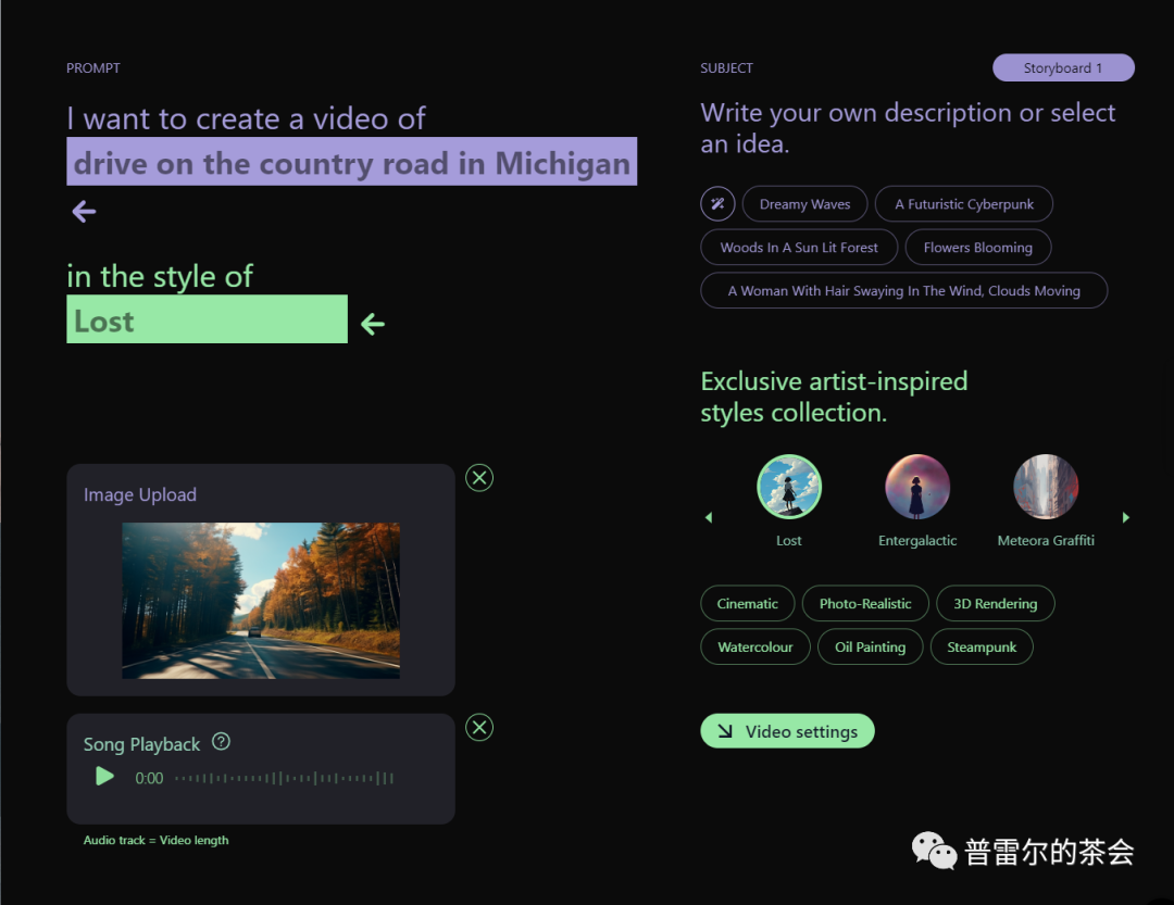 值得一提的是,Kaiber提供了很多独家艺术风格,这是他们与艺术家和音乐人合作开发的。我在这里选择的Lost,当然就来源于Linkin Park的AI音乐MV《Lost》。