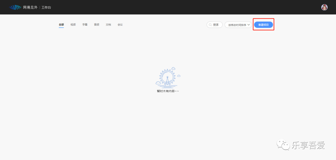 点击右上角的「新建项目」,在弹出的页面中,可以看到网易见外提供的多种服务,如「视频翻译」、「视频转写」和「语音转写」等。