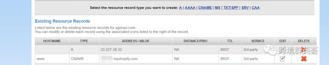 第七步:将shopify的ip和自己的二级域名填进去就可以了,如下图所示: