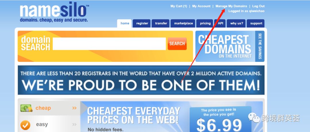 第五步:回到https://www.namesilo.com/ 进入Manage My Domains