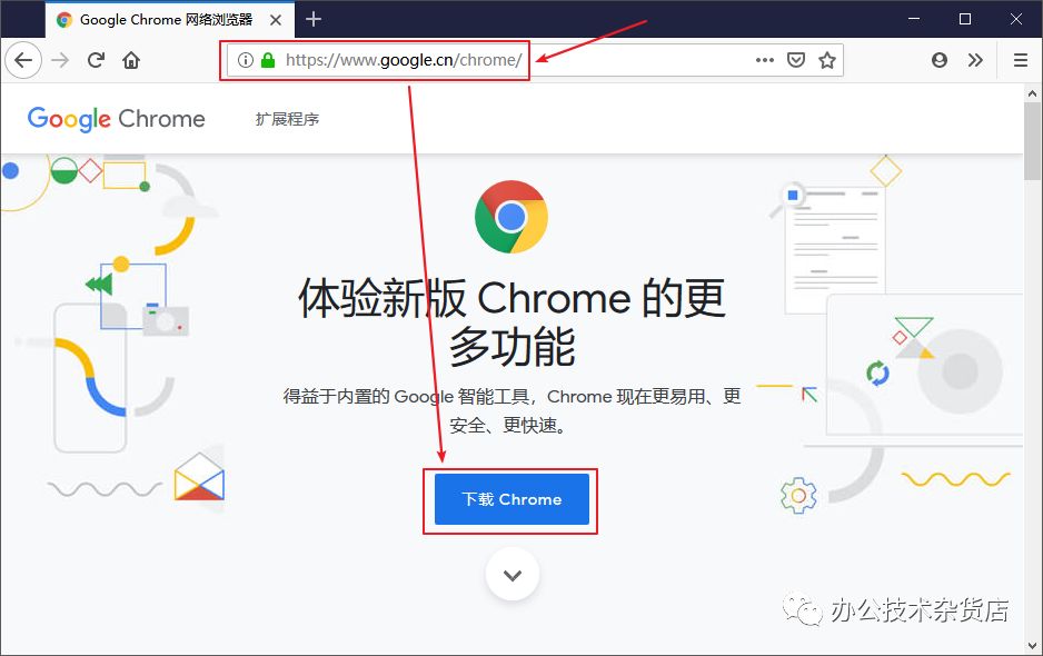 步骤 1:如上图,访问谷歌浏览器的官网:https://www.google.cn/chrome/,点击 [ 下载 Chrome ]