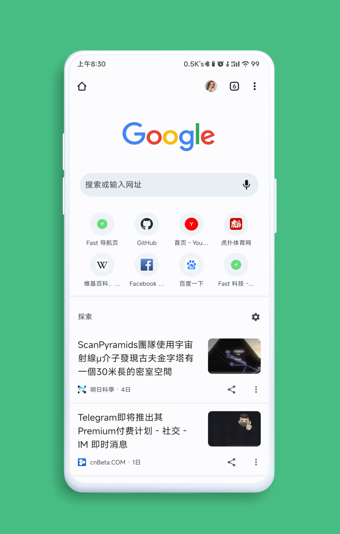 快速浏览,减少输入操作。您既可从即搜即得的个性化搜索结果中进行选择,也可快速浏览之前访问过的网页。您还可使用自动填充功能快速填写表单。无痕式浏览。您可以使用无痕模式浏览互联网 - 在这种模式下,系统不会保存您的历史记录。在您的所有设备上,您都能私密地浏览。在多部设备间同步 Chrome。当您登录 Chrome 之后,您的书签、密码和设置将会自动在您的所有设备之间保持同步。您可在手机、平板电脑或笔记本电脑上无缝访问自己的所有信息。只需轻轻点按一下,即可查看您收藏的所有内容。Chrome 并非只能快速执行 Google 搜索,而是经过了精心设计,只需轻轻一按即可浏览收藏的所有内容。您可在新标签页中直接点按收藏的新闻网站或社交媒体。Chrome 还提供了点按搜索功能 - 该功能在大多数网页上可用。您只需在当前浏览的网页中点按任意字词或短语,即可在不离开该网页的情况下发起 Google 搜索。使用 Google 安全浏览功能保护手机。Chrome 内置了 Google 安全浏览功能。当您尝试访问危险网站或下载危险文件时,该功能会向您显示警告以保护手机的安全。