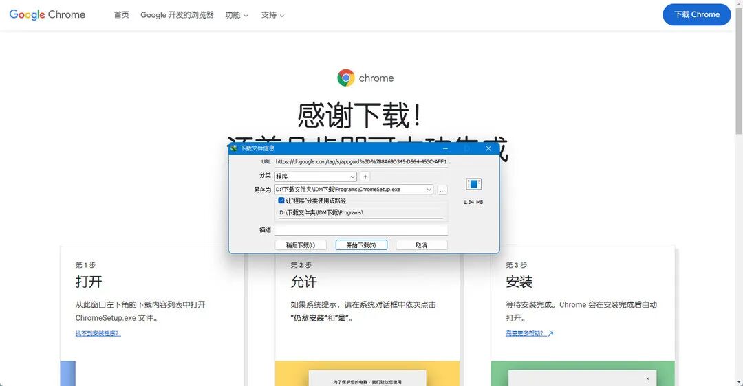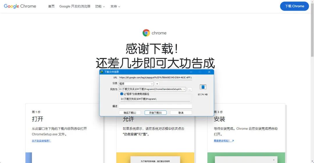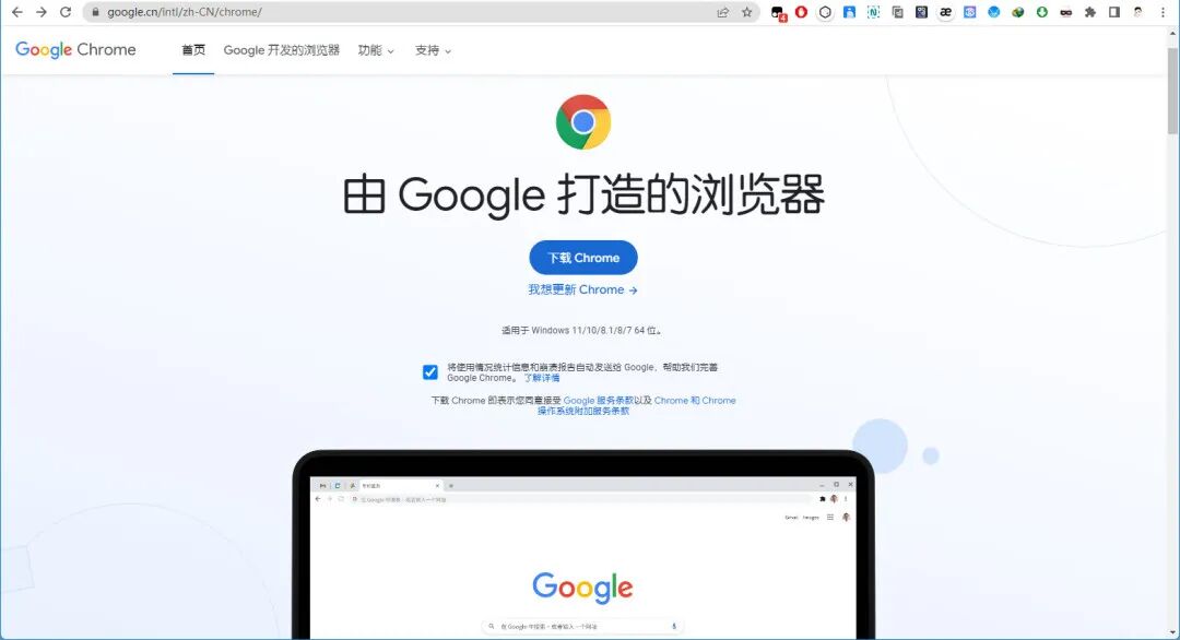 最后,可直接访问已填充完整的网址链接:https://google.cn/intl/zh-CN/chrome/?standalone=1&platform=win64