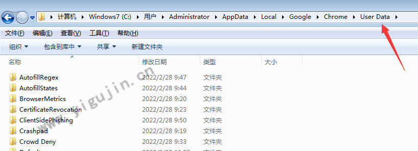 Win7系统电脑上的谷歌浏览器收藏夹数据都存放在chrome下面的User Data里面,默认路径为:C:\Users\Administrator\AppData\Local\Google\Chrome\User Data,其中Administrator显示为用户。我们只需要将整个User Data文件夹拷贝到新电脑对应的路径下即可。